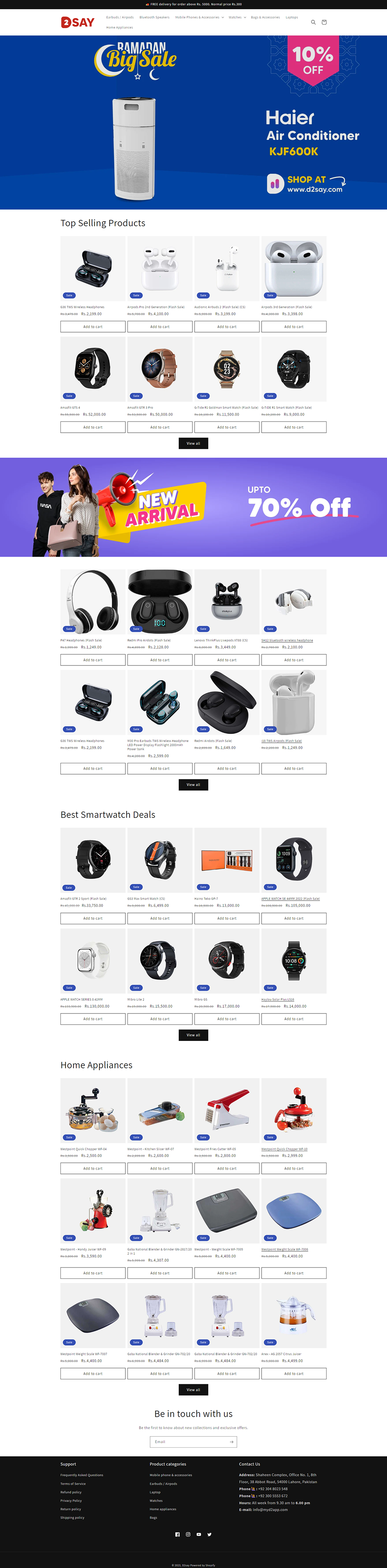 d2say is an E-commerce site built on Shopify, offering a diverse range of products to online shoppers.