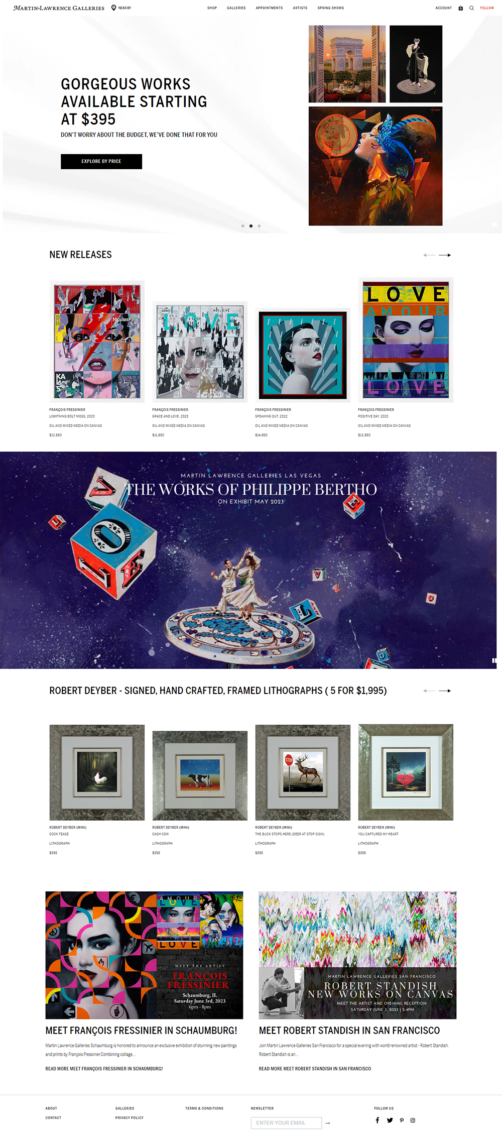 Utilizing the flexibility of both WordPress and Shopify, our team seamlessly integrated these platforms to create a robust and scalable foundation for Martin Lawrence Fine Art’s online store.